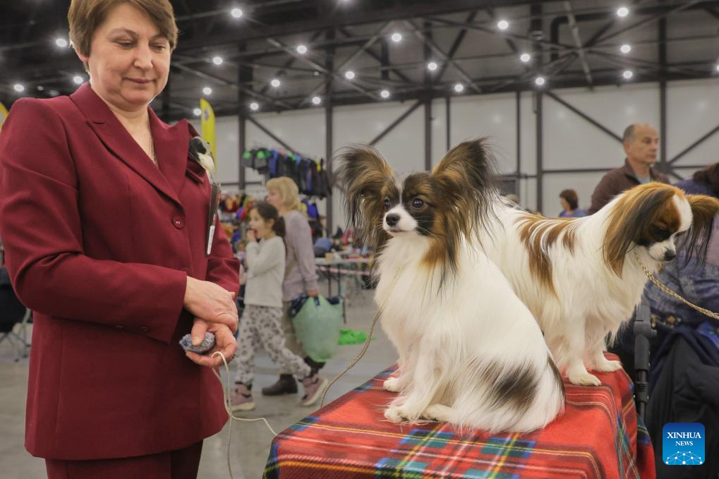 Dos perros papillón participan en la Exposición de Mascotas 2025 en San Petersburgo, Rusia, el 14 de diciembre de 2025. (Foto de Irina Motina/Xinhua).