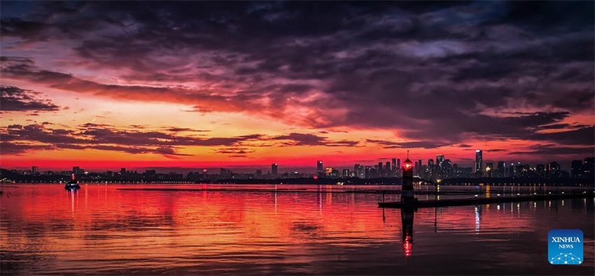 Esta foto tomada el 22 de noviembre de 2025 muestra el paisaje al atardecer en el área del lago Donghu en Wuhan, provincia central de Hubei, China. (Xinhua/Shen Hongbing).