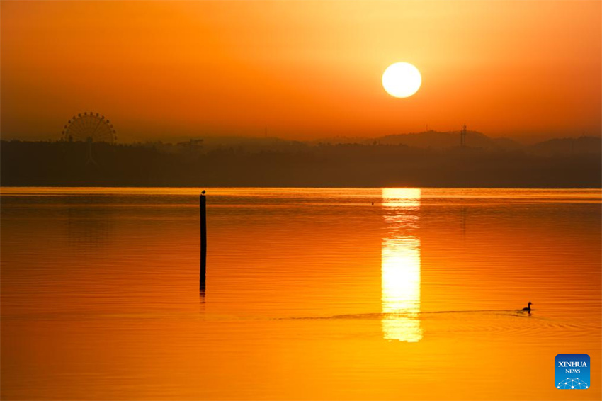 Esta foto tomada el 14 de diciembre de 2025 muestra el paisaje al amanecer en la zona del lago Donghu en Wuhan, provincia de Hubei, en el centro de China. (Xinhua/Shen Hongbing).