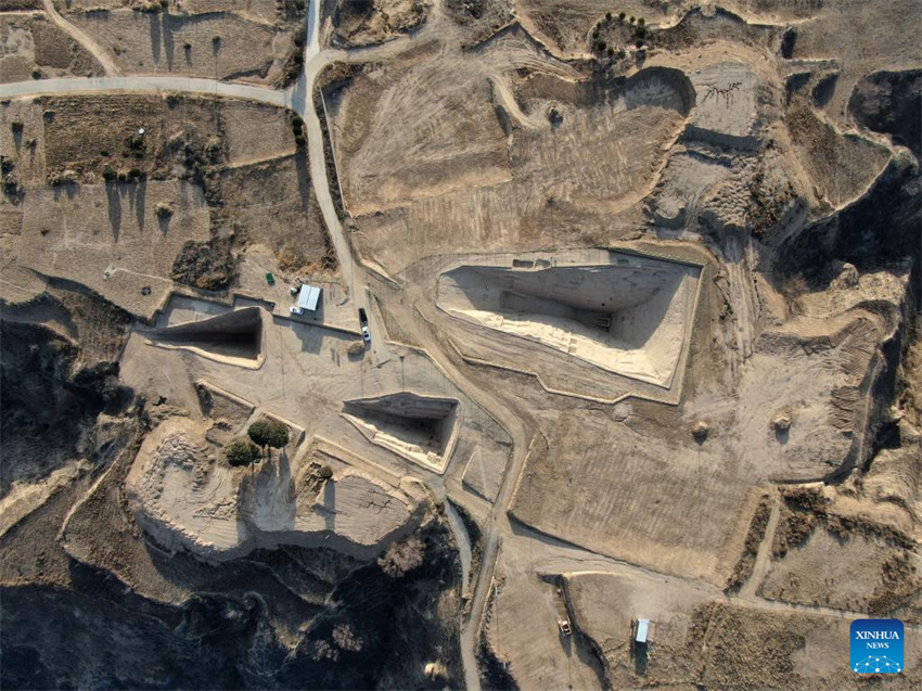 Una foto aérea tomada por dron el 8 de diciembre de 2025 muestra parte del yacimiento de Zhaigou en el distrito de Qingjian, provincia de Shaanxi, noroeste de China. Zhaigou, un asentamiento de aproximadamente 3.200 años de antigüedad, fue catalogado como uno de los mayores descubrimientos arqueológicos de campo durante el sexto Foro de Arqueología de Shanghai (SAF2025), este martes. (Xinhua/Li Yibo).