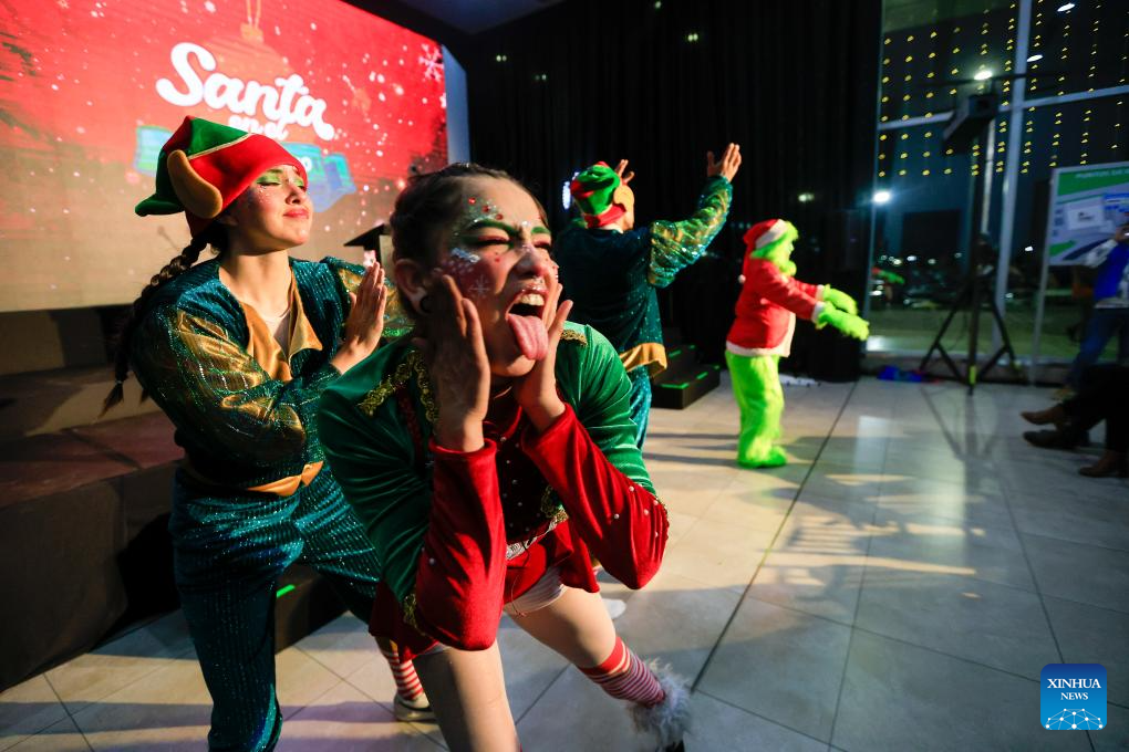 Imagen del 19 de diciembre de 2025 de artistas realizando una presentación durante la feria "Santa en el Bicentenario 2025", en Quito, capital de Ecuador. La época de Navidad se vive con intensidad en la capital de Ecuador donde la noche del viernes se inauguró la primera edición de la feria "Santa en el Bicentenario 2025", un espacio navideño con identidad local que reúne comercio, arte y espíritu solidario. (Xinhua/Ricardo Landeta)