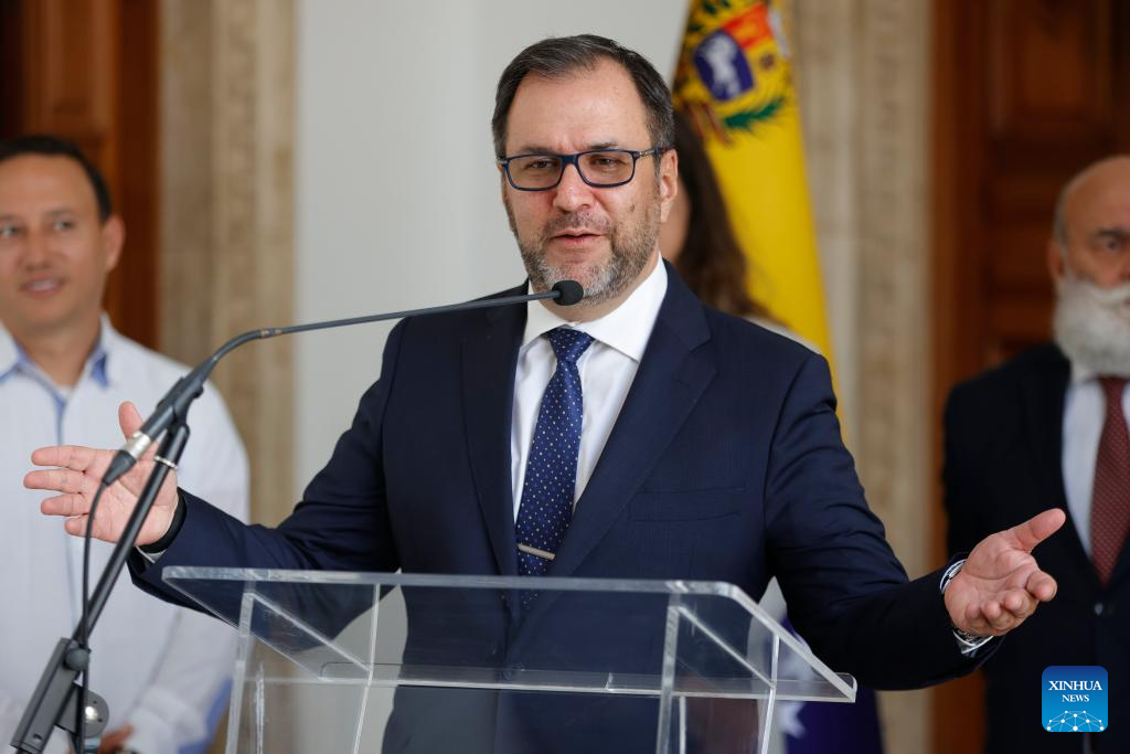 El canciller venezolano, Yván Gil, habla durante una conferencia de prensa, en Caracas, Venezuela, el 22 de diciembre de 2025. El presidente venezolano, Nicolás Maduro, envió una carta a los jefes de estados latinoamericanos y a los miembros de la Organización de las Naciones Unidas, para alertar sobre las agresiones de Estados Unidos sobre Venezuela y que impactan en la región, informó el lunes el canciller de la nación sudamericana, Yván Gil. (Xinhua/Str)