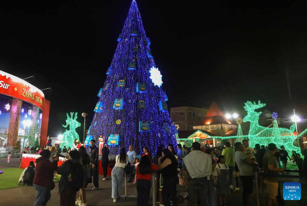 Imagen del 22 de diciembre de 2025 de personas visitando la Villa Navideña en el Mall del Sur, en Lima, Perú. (Xinhua/Mariana Bazo)
