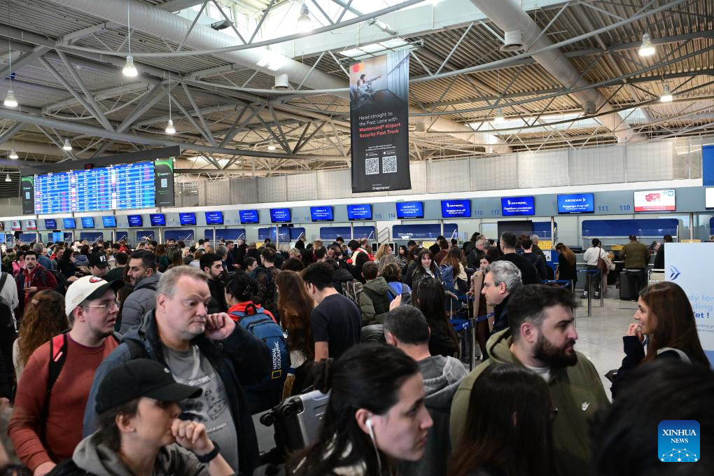 Pasajeros se reúnen en la sala de salidas del Aeropuerto Internacional de Atenas, en Atenas, Grecia, el 4 de enero de 2026. Todos los vuelos con destino y origen en Grecia fueron suspendidos el domingo después de que un fallo en las comunicaciones a nivel nacional interrumpiera los sistemas de control del tráfico aéreo, informó la cadena estatal griega ERT. (Xinhua/Marios Lolos)