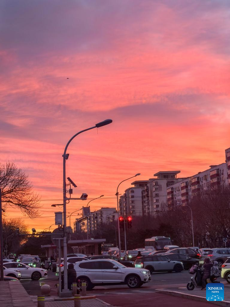 Esta foto tomada con un teléfono móvil el 7 de enero de 2026 muestra una vista del amanecer sobre Beijing, capital de China. (Xinhua/Li Xin).