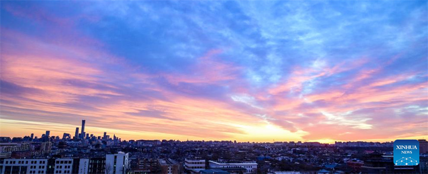Esta fotografía, tomada el 7 de enero de 2026, muestra el horizonte de Beijing, capital de China, bañado por la luz del amanecer. (Xinhua/Chen Yehua).