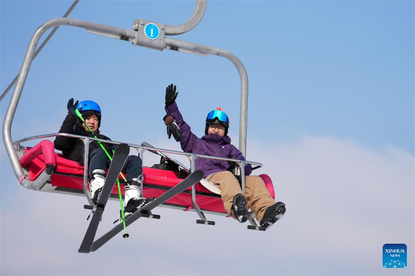 Turistas subidos a un telesilla en la estación internacional de esquí de Guangwu, en el distrito de Shanyin, Shuozhou, provincia de Shanxi, en el norte de China, el 7 de enero de 2026. Dicho distrito ha aprovechado su ventaja geográfica para desarrollar el turismo relacionado con el hielo y la nieve, que ahora es un nuevo motor para la economía local. (Xinhua/Yang Chenguang).