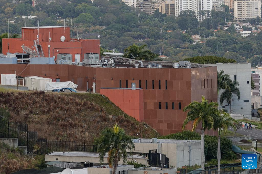Imagen del 9 de enero de 2026 del edificio de la Embajada de Estados Unidos, en Caracas, Venezuela. El Gobierno de Venezuela decide iniciar un "proceso exploratorio de carácter diplomático con el Gobierno de Estados Unidos", orientado al restablecimiento de misiones diplomáticas en ambos países, informó el viernes el canciller venezolano, Yván Gil. (Xinhua/Str)