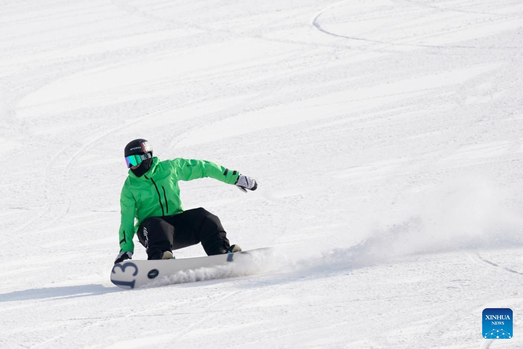 Imagen del 7 de enero de 2026 de un turista divirtiéndose en la estación internacional de esquí de Guangwu, en el distrito de Shanyin de Shuozhou, en la provincia de Shanxi, en el norte de China. El distrito de Shanyin ha estado aprovechando su ventaja geográfica para desarrollar el turismo temático de hielo y nieve, que ahora es un nuevo motor para la economía local. (Xinhua/Yang Chenguang)