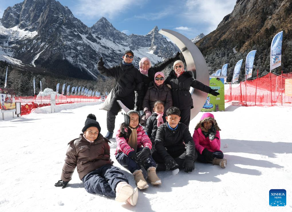 Turistas malayos se divierten en una estación de esquí en el distrito de Lixian, provincia de Sichuan, suroeste de China, el 5 de enero de 2026. (Xinhua/Jiang Hongjing).