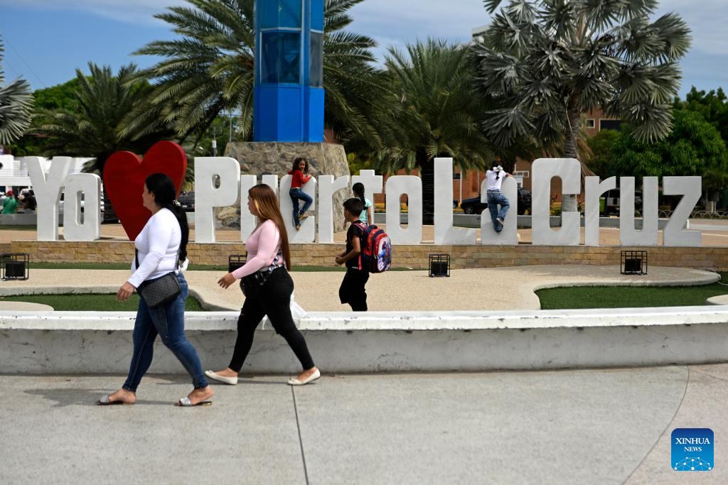 Mujeres caminan por una plaza en Puerto La Cruz, en el estado Anzoátegui, Venezuela, el 11 de enero de 2026. (Xinhua/Lucio Tavora)