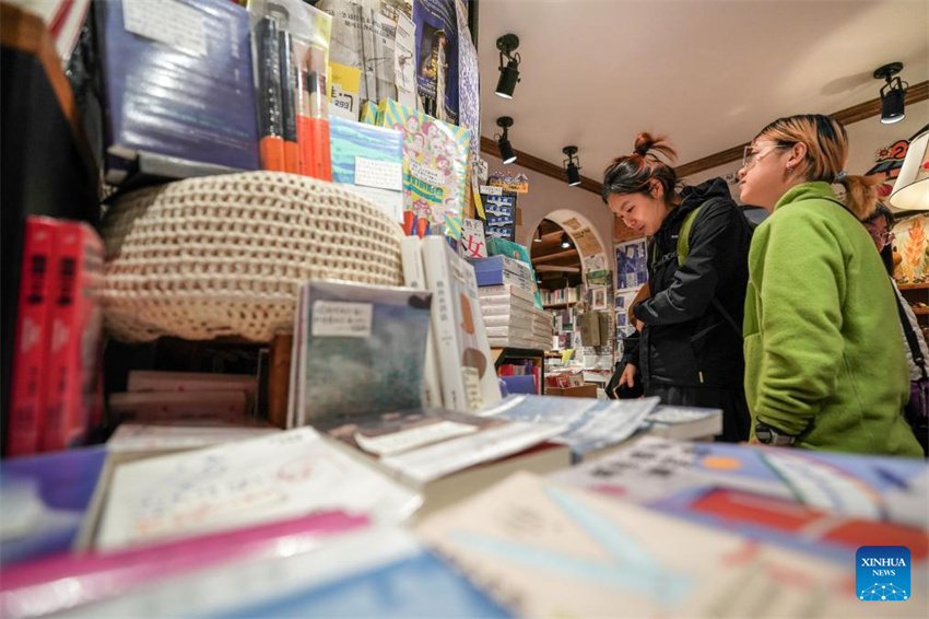 Turistas visitan una librería junto al lago Cuihu, en Kunming, provincia de Yunnan, suroeste de China, el 13 de enero de 2026. (Xinhua/Peng Yikai).