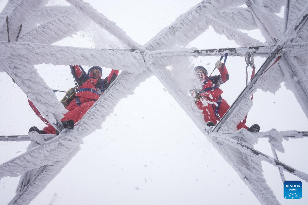 Trabajadores de mantenimiento eléctrico garantizan el funcionamiento estable de la red eléctrica en medio de severa formación de hielo en Hubei