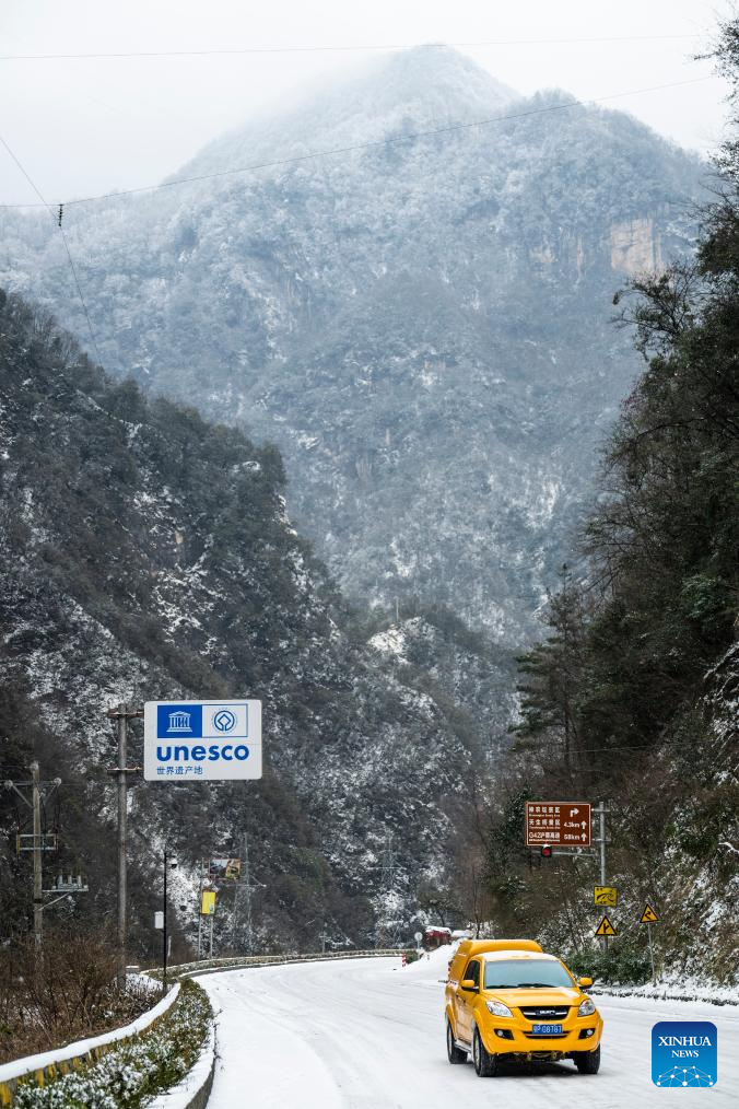 Trabajadores realizan patrullaje vehicular por problemas de suministro eléctrico, en el poblado de Muyu, en el distrito forestal de Shennongjia, en la provincia de Hubei, en el centro de China, el 21 de enero de 2026. Ante las bajas temperaturas generalizadas y una severa formación de hielo en las líneas eléctricas en algunas áreas de gran altitud de la provincia de Hubei, los trabajadores de mantenimiento eléctrico realizaron patrullajes para garantizar el funcionamiento estable de la red eléctrica. (Xinhua/Wu Zhizun)