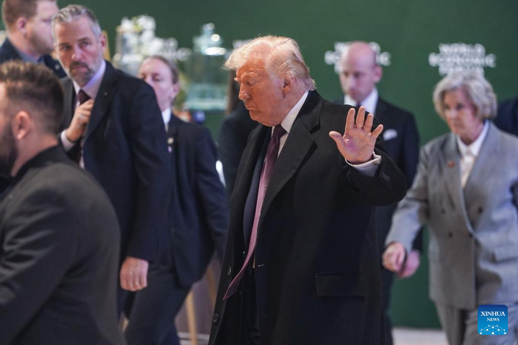 El presidente de Estados Unidos, Donald Trump, es visto tras su reunión con el presidente de Ucrania, Volodymyr Zelensky, en Davos, Suiza, el 22 de enero de 2026. Trump mencionó el jueves en Davos que su reunión con Zelensky fue "muy buena" y agregó que "es un proceso continuo".(Xinhua/Peng Ziyang)