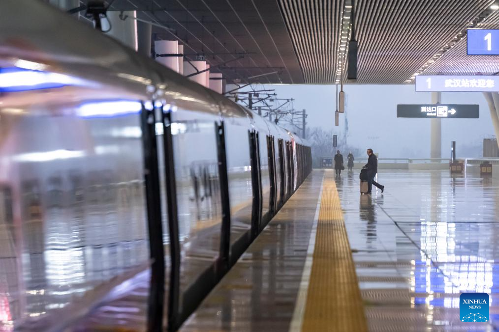 Pasajeros suben al tren No. G340 en la estación de Ferrocarril de Wuhan, en Wuhan, en la provincia de Hubei, en el centro de China, el 26 de enero de 2026. Un nuevo horario de trenes a nivel nacional entró en vigor en China a partir del 26 de enero de 2026 con una mayor capacidad y eficiencia en el transporte de pasajeros y mercancías. (Xinhua/Wu Zhizun)