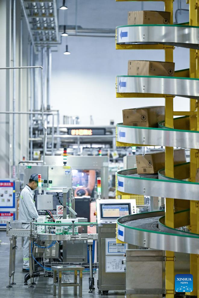 Un miembro del personal comprueba una línea de producción automática en el taller de envasado de Yili en Wuzhong, región autónoma de la etnia Hui de Ningxia, en el noroeste de China, el 27 de enero de 2026. (Xinhua/Feng Kaihua).