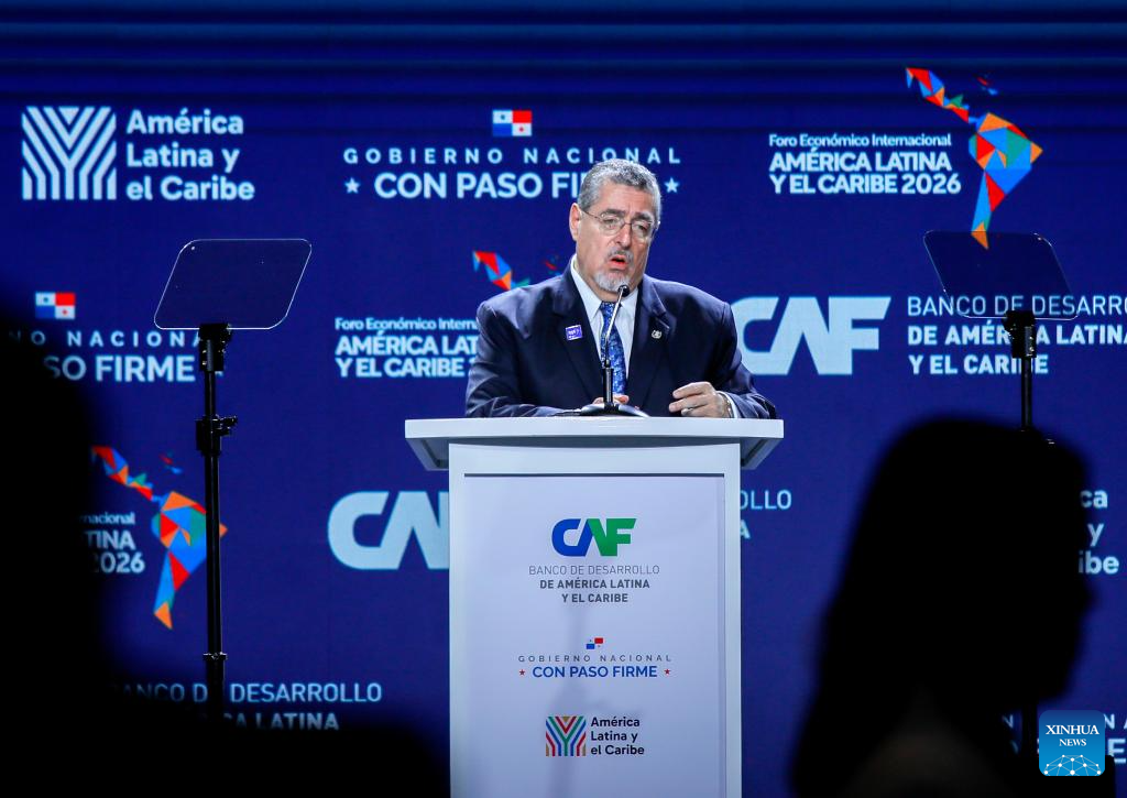 El presidente guatemalteco, Bernardo Arévalo, pronuncia un discurso durante el Foro Económico Internacional América Latina y el Caribe 2026 del Banco de Desarrollo de América Latina y el Caribe (CAF), en la Ciudad de Panamá, capital de Panamá, el 28 de enero de 2026. El Foro Económico Internacional América Latina y el Caribe 2026 del CAF se desarrolla en Panamá y cuenta con la participación de mandatarios y delegaciones de distintos países de América Latina y el Caribe, en un contexto marcado por la búsqueda de nuevas estrategias de cooperación e inserción regional en la economía global. (Xinhua/Daniel González)