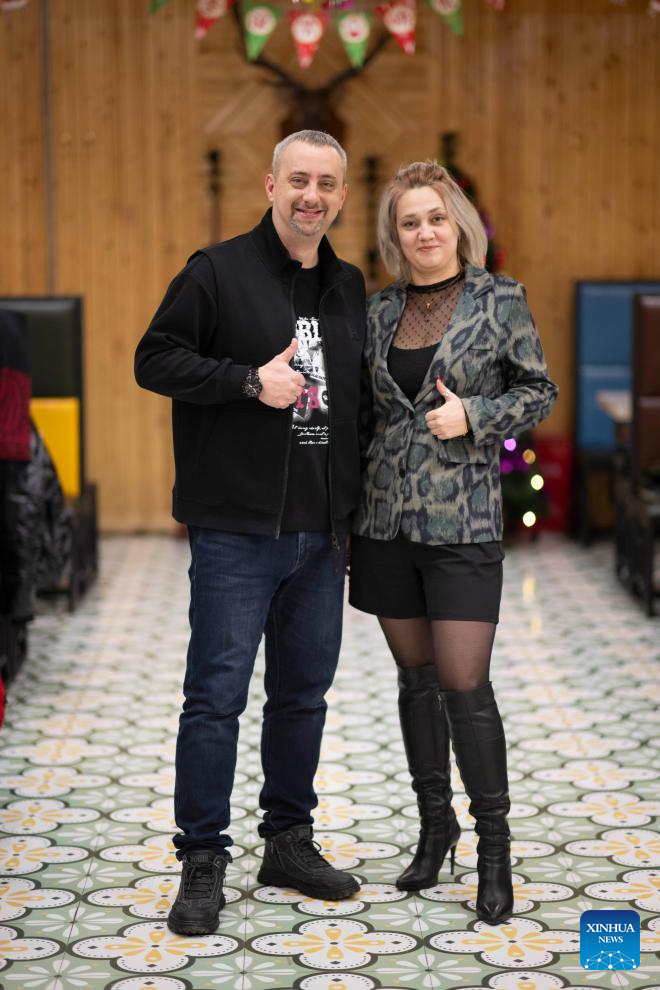 Artem Shishov (izquierda) y su novia Ira Klimena posan para una foto en Suifenhe, provincia de Heilongjiang, noreste de China, el 8 de enero de 2026. Artem Shishov, de Vladivostok (Rusia), es una celebridad local en Internet. Se mudó a Suifenhe, en la provincia china de Heilongjiang, hace tres años y se dedica al comercio exterior y al turismo. (Xinhua/Zhang Tao).