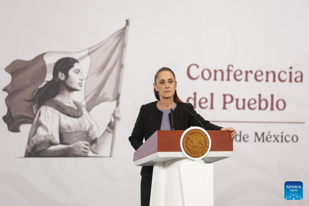 La presidenta mexicana, Claudia Sheinbaum, reacciona durante su conferencia de prensa matutina, en Palacio Nacional, en la Ciudad de México, capital de México, el 29 de enero de 2026. Sheinbaum dio a conocer el jueves que mantuvo una llamada telefónica con su par de Estados Unidos, Donald Trump, en la que abordaron temas comerciales y relevantes de la relación entre ambas naciones. (Xinhua/Francisco Cañedo)