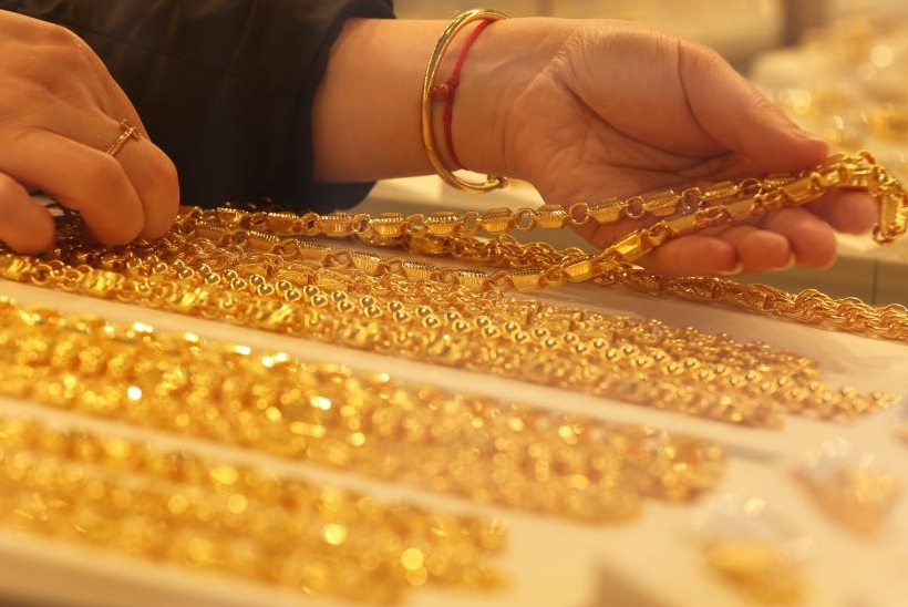 Una trabajadora arregla accesorios de oro en una tienda de oro, en el poblado de Yuyue, en la ciudad de Huzhou de la provincia de Zhejiang, en el este de China, el 29 de enero de 2026. Tanto el precio internacional del oro al contado como el precio de los futuros del oro en abril en la Bolsa Mercantil de Nueva York superaron el máximo histórico de 5.500 dólares estadounidenses por onza el 28 de enero. El precio del oro ha subido más de 500 dólares estadounidenses por onza en las últimas 72 horas, y el valor del mercado del oro se ha disparado en más de 3,5 billones de dólares estadounidenses. En total, el precio internacional del oro aumentó aproximadamente un 20 por ciento a principios de 2026. (Xinhua/Ni Lifang)