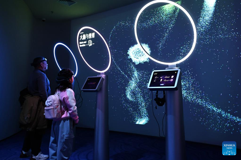 Visitantes juegan a un juego de detección de movimiento de «cerebro y emoción» en el Museo de Ciencia y Tecnología de Shanghai, en el este de China, el 27 de enero de 2026. (Xinhua/Fang Zhe).