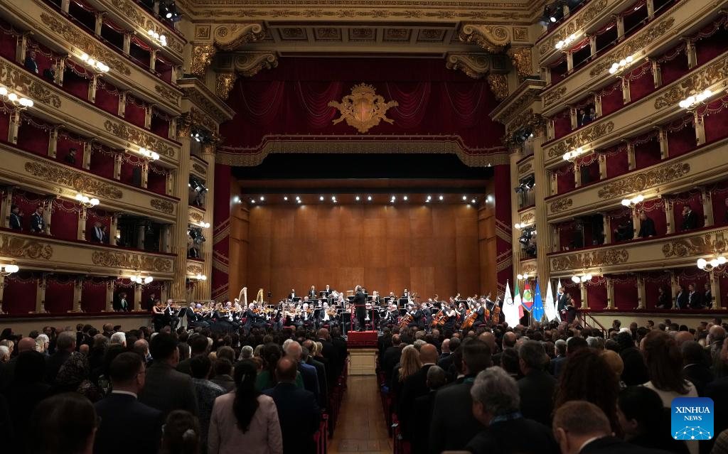 Imagen del 2 de febrero de 2026 de la vista general de la ceremonia de apertura de la Sesión 145 del Comité Olímpico Internacional, en el Teatro La Scala, en Milán, Italia. (Xinhua/Sun Fei)