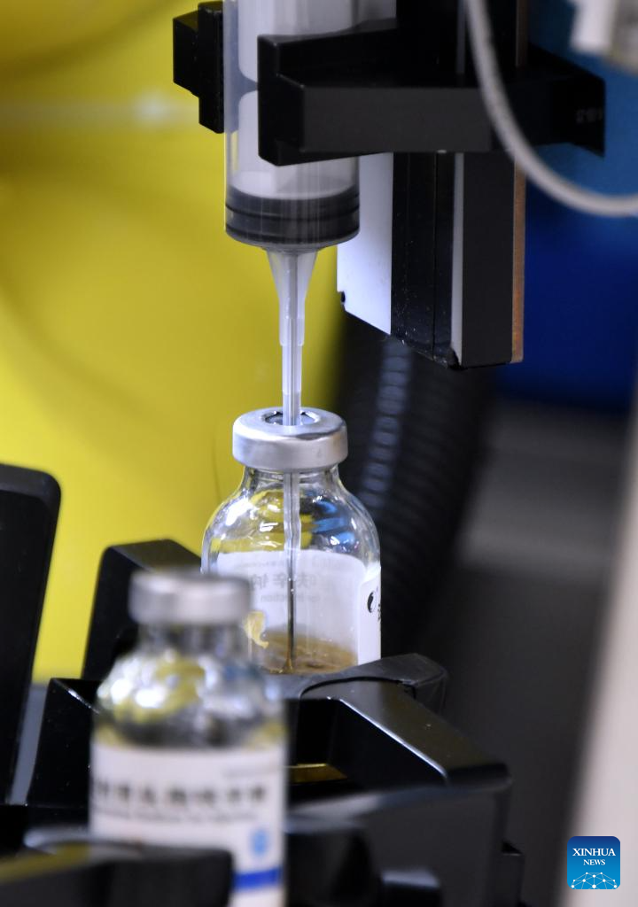 Un sistema robótico inteligente automático para la preparación de medicamentos intravenosos funciona en la sucursal de Tongzhou del Hospital Anzhen de Beijing, capital de China, el 3 de febrero de 2026. (Xinhua/Li Xin).
