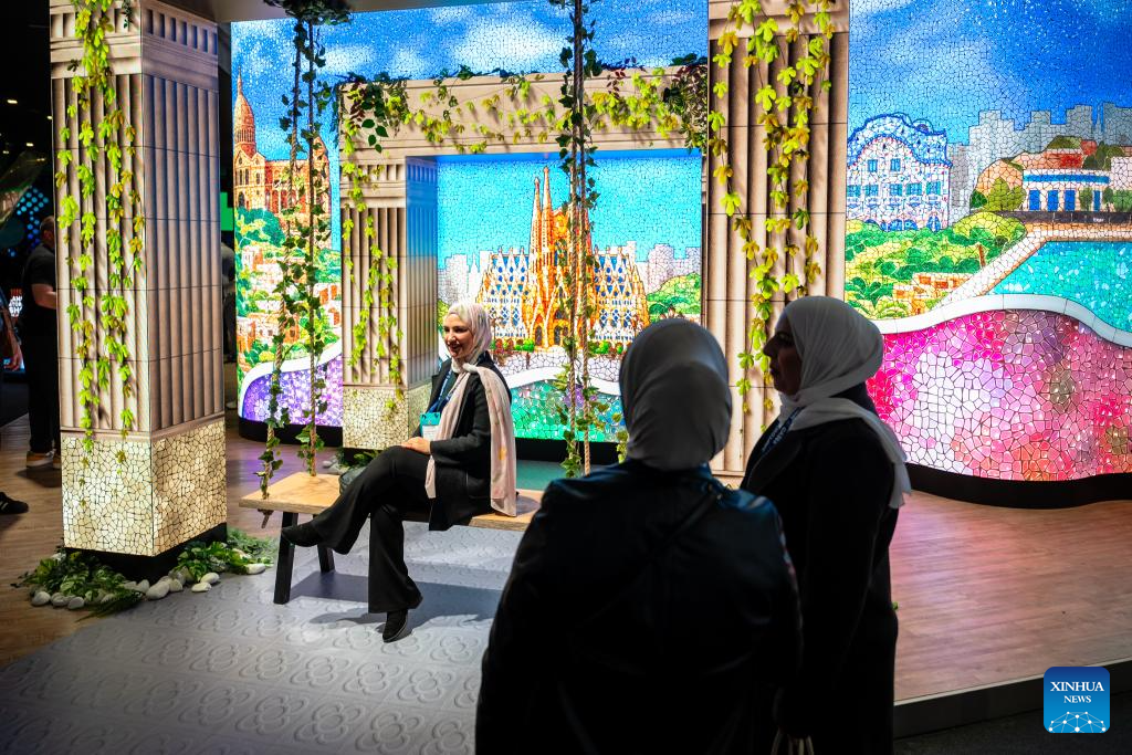 Una visitante posa para fotografías durante la Integrated Systems Europe (ISE, por sus siglas en inglés) 2026, en Barcelona, España, el 3 de febrero de 2026. (Xinhua/Joan Gosa)