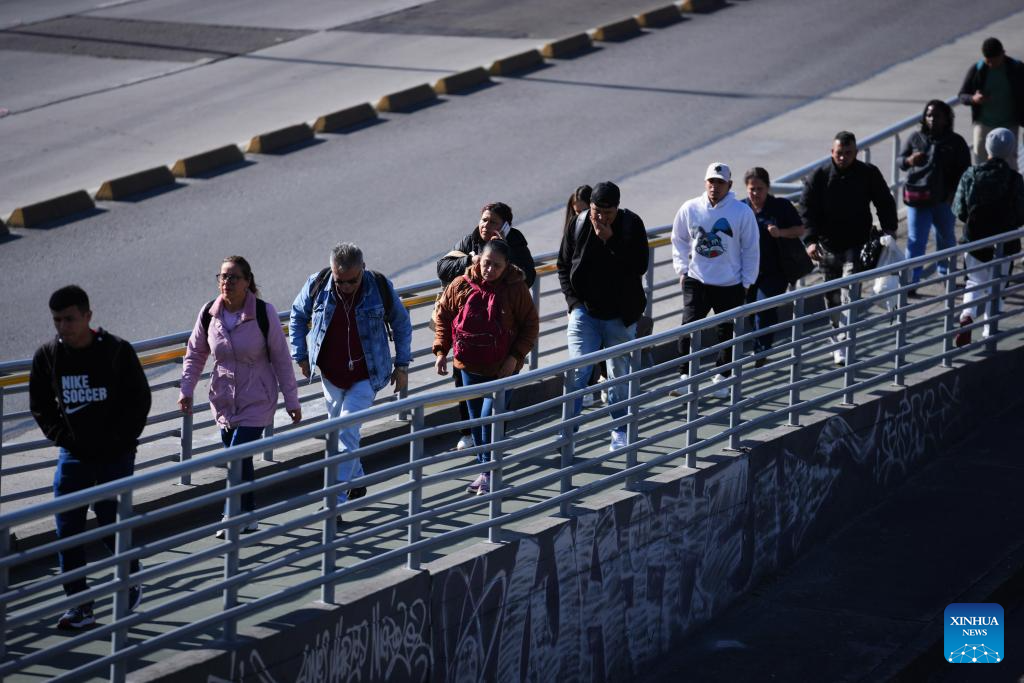 Personas caminan por un puente peatonal durante el primer Día Sin Carro y Sin Moto del año, en Bogotá, capital de Colombia, el 5 de febrero de 2026. (Xinhua/Andrés Moreno)