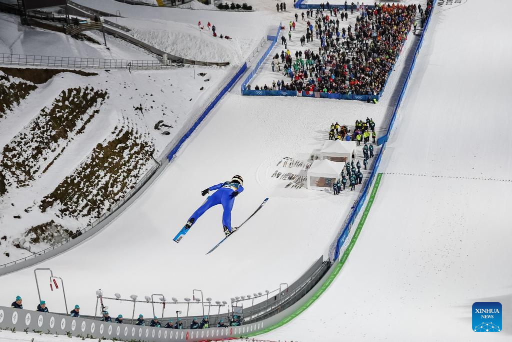Imagen del 7 de febrero de 2026 de Abigail Strate, de Canadá, compitiendo durante el trampolín normal individual femenino de salto de esquí en los Juegos Olímpicos de Invierno Milán-Cortina 2026, en Predazzo, Italia. (Xinhua/Huang Wei)