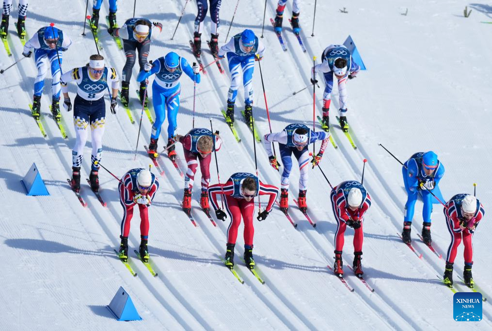 Atletas compiten durante el esquiatlón 10 km +10 km masculino de esquí de fondo de los Juegos Olímpicos de Invierno Milán-Cortina 2026, en Tesero, Italia, el 8 de febrero de 2026. (Xinhua/He Canling)