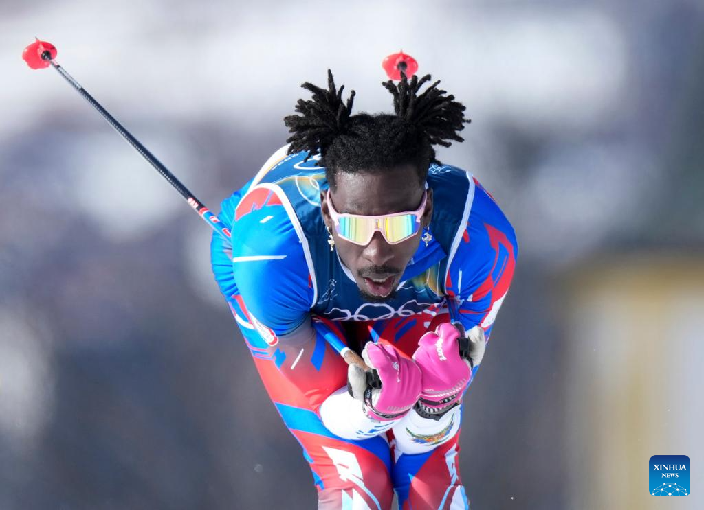 Stevenson Savart, de Haití, compite durante el esquiatlón 10 km +10 km masculino de esquí de fondo de los Juegos Olímpicos de Invierno Milán-Cortina 2026, en Tesero, Italia, el 8 de febrero de 2026. (Xinhua/He Canling)