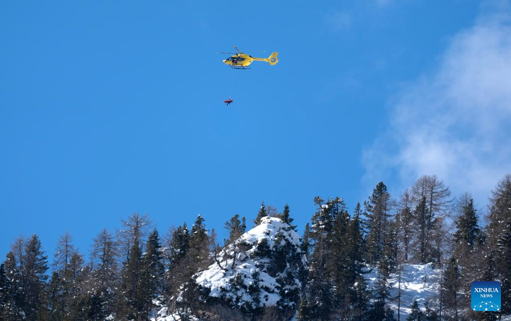 La esquiadora estadounidense Lindsey Vonn es trasladada en helicóptero después de lesionarse durante el descenso femenino de esquí alpino de los Juegos Olímpicos de Invierno Milán-Cortina 2026, en Cortina, Italia, el 8 de febrero de 2026. (Xinhua/Fei Maohua)