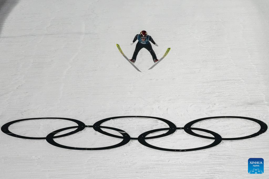 Imagen del 8 de febrero de 2026 de Nikaido Ren, de Japón, compitiendo durante el segundo Entrenamiento Oficial de trampolín normal masculino de salto de esquí en los Juegos Olímpicos de Invierno Milán-Cortina 2026, en Predazzo, Italia. (Xinhua/Huang Wei)