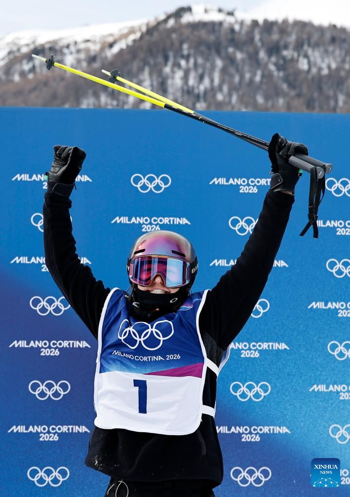 Mathilde Gremaud, de Suiza, reacciona durante la final de esquí slopestyle femenino de esquí acrobático en los Juegos Olímpicos de Invierno Milán-Cortina 2026, en Livigno, Italia, el 9 de febrero de 2026. (Xinhua/Wang Peng)