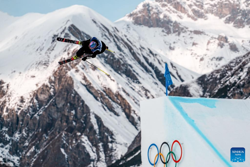 Mathilde Gremaud, de Suiza, compite durante la final de esquí slopestyle femenino de esquí acrobático en los Juegos Olímpicos de Invierno Milán-Cortina 2026, en Livigno, Italia, el 9 de febrero de 2026. (Xinhua/Hu Chao)