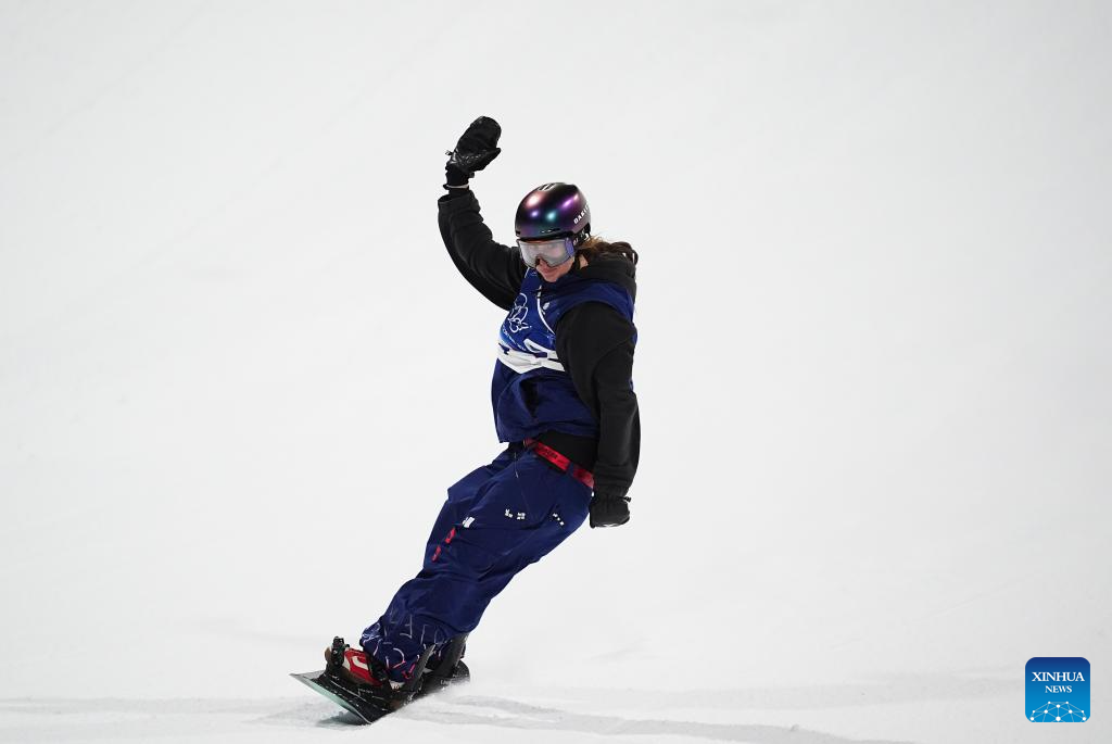 Imagen del 8 de febrero de 2026 de Mia Brookes, de Reino Unido, compitiendo durante la clasificación de Big Air femenino de Snowboard de los Juegos Olímpicos de Invierno de Milán-Cortina 2026, en Livigno, Italia. (Xinhua/Wu Huiwo)