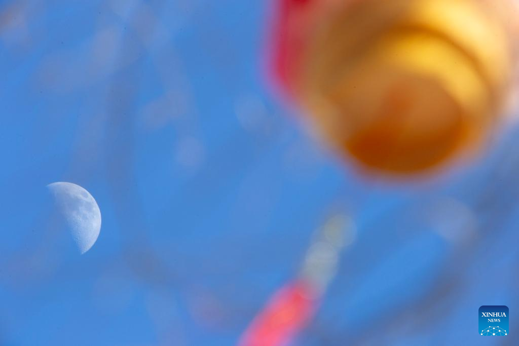 Esta foto tomada el 24 de febrero de 2026 muestra la Luna sobre la ciudad de Fujin, provincia de Heilongjiang, en el noreste de China. (Foto de Qu Yubao/Xinhua).