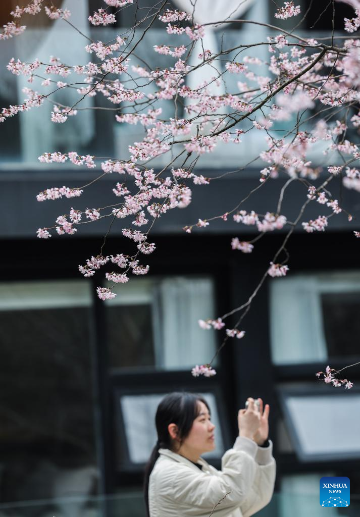 Cerezos silvestres en plena floración atraen a los turistas en Zhejiang, este de China