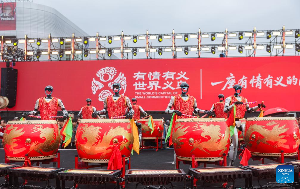 Robots humanoides realizan una presentación en el Centro Global de Comercio Digital, en Yiwu, en la provincia de Zhejiang, en el este de China, el 28 de febrero de 2026. Los comerciantes dieron inicio el sábado al primer día hábil del Año del Caballo, con la reanudación de las operaciones de la Ciudad de Comercio Internacional de Yiwu y el Centro Global de Comercio Digital en Yiwu, el mayor centro de productos básicos del mundo, tras las vacaciones de la Fiesta de la Primavera. Según datos de la aduana local, el comercio exterior total de Yiwu alcanzó los 836,5 billones de yuanes (unos 121,97 billones de dólares estadounidenses) en 2025, lo que representa un aumento interanual del 25,1 por ciento. Las exportaciones aumentaron más del 24 por ciento y las importaciones más del 32 por ciento. (Xinhua/Xu Yu)