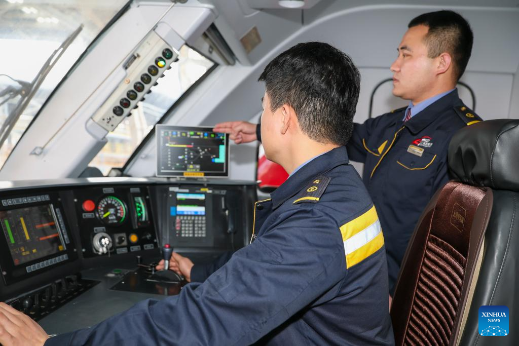 Los maquinistas comprueban el sistema de prevención de errores de maniobra en un campo de mantenimiento de la sección de locomotoras y material rodante de Shanghai de China Railway Shanghai Group Co., Ltd., en Shanghai, este de China, el 28 de febrero de 2026. (Xinhua/Wang Xiang).