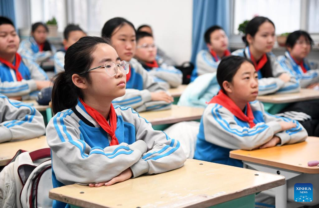 Los alumnos atienden en clase en una escuela primaria el primer día del nuevo semestre en el distrito de Pinggu, en Beijing, capital de China, el 2 de marzo de 2026. El lunes comenzó el nuevo semestre en las escuelas primarias y secundarias de muchas partes de China. (Xinhua/Ren Chao).