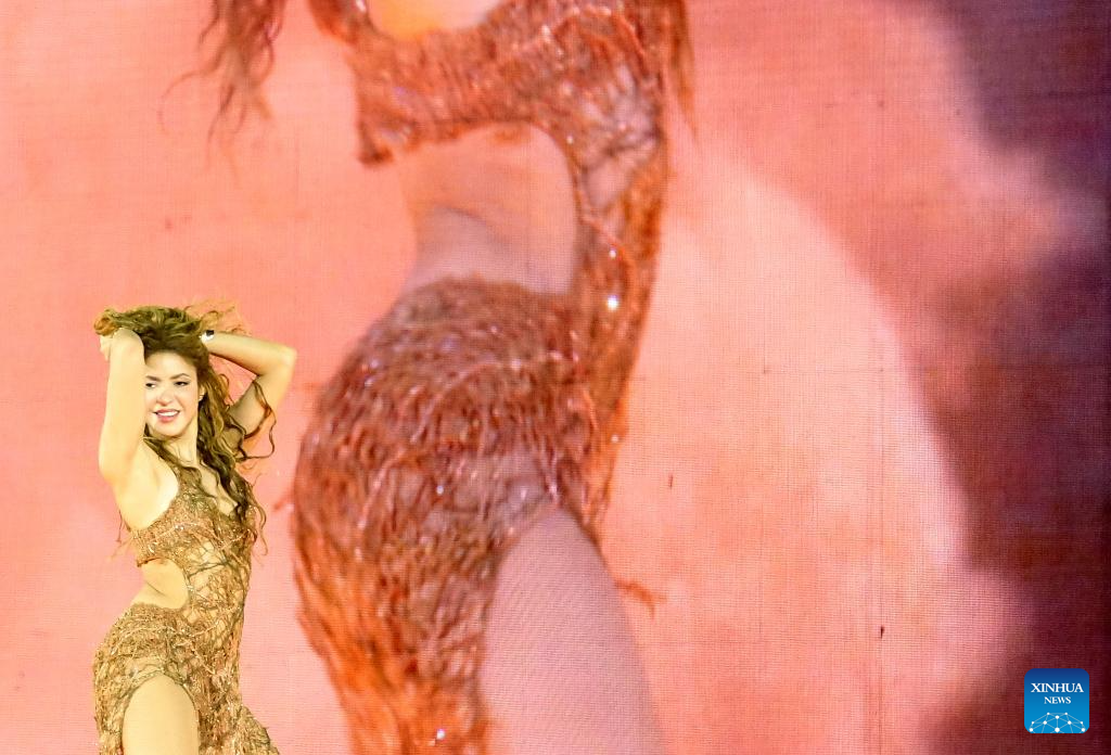 Imagen del 1 de marzo de 2026 de la cantante colombiana, Shakira, realizando una presentación durante su concierto gratuito en el Zócalo de la Ciudad de México, capital de México. (Xinhua/Carolina Endara)