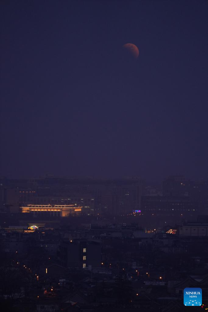 La Luna se ve durante un eclipse lunar total sobre Beijing, capital de China, el 3 de marzo de 2026. (Xinhua/Du Juanjuan).