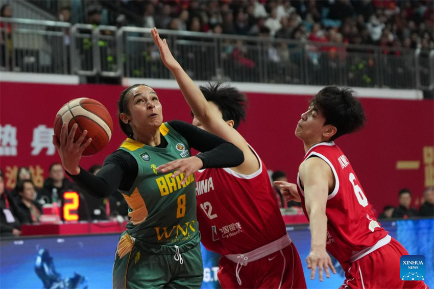 Taina Mayara Da Paixao (izquierda), de Brasil, compite durante un partido amistoso entre China y Brasil en Changsha, provincia de Hunan, en el centro de China, el 4 de marzo de 2026. (Xinhua/Chen Zhenhai).