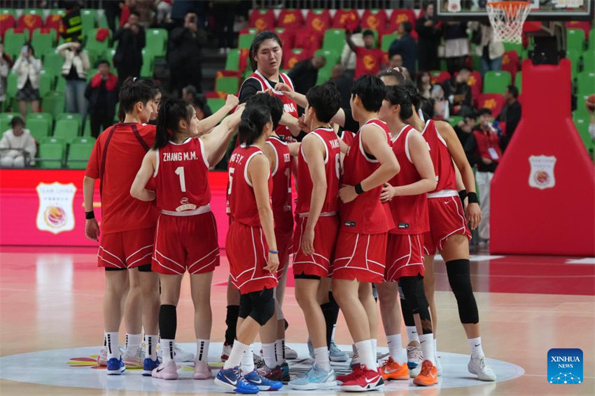 Las jugadoras de China celebran tras ganar un partido amistoso entre China y Brasil en Changsha, provincia de Hunan, en el centro de China, el 4 de marzo de 2026. (Xinhua/Chen Zhenhai).