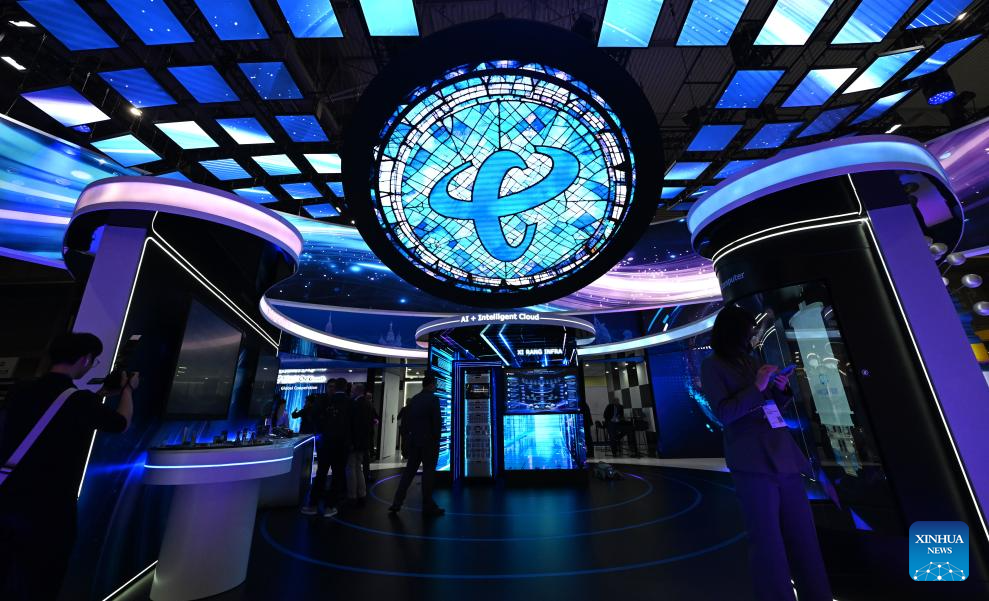 Imagen del 2 de marzo de 2026 de personas visitando el estand de China Telecom durante el Congreso Mundial de Móviles (MWC, por siglas en inglés) 2026, en Barcelona, España. El MWC 2026 se inauguró el lunes en Barcelona, España. De acuerdo con sus organizadores, por primera vez se instaló un Pabellón de China en el congreso, donde importantes empresas chinas, incluidas China Mobile, China Unicom, Huawei, ZTE, Honor y Xiaomi, exhiben sus últimos avances en comunicaciones móviles y tecnologías de inteligencia artificial. (Xinhua/Cheng Min)