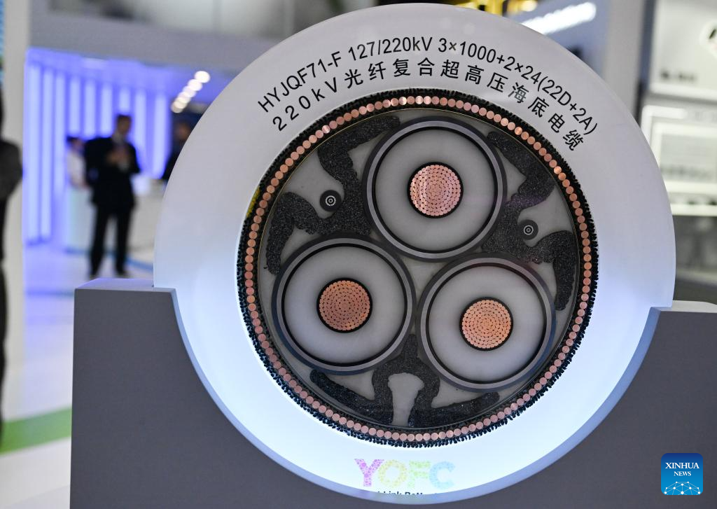 Imagen del 2 de marzo de 2026 de un cable submarino compuesto de fibra óptica de extra alta tensión fabricado por Yangtze Optical Fibre and Cable Joint Stock Limited Company de China durante el Congreso Mundial de Móviles (MWC, por siglas en inglés) 2026, en Barcelona, España. El MWC 2026 se inauguró el lunes en Barcelona, España. De acuerdo con sus organizadores, por primera vez se instaló un Pabellón de China en el congreso, donde importantes empresas chinas, incluidas China Mobile, China Unicom, Huawei, ZTE, Honor y Xiaomi, exhiben sus últimos avances en comunicaciones móviles y tecnologías de inteligencia artificial. (Xinhua/Cheng Min)
