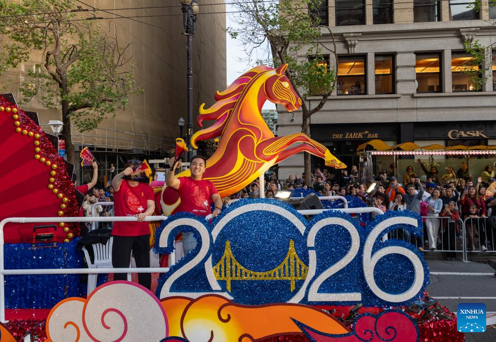 Imagen del 7 de marzo de 2026 de personas asistiendo a un desfile de carros alegóricos para celebrar el Año Nuevo Lunar chino, en San Francisco, Estados Unidos. (Xinhua/Dong Xudong)